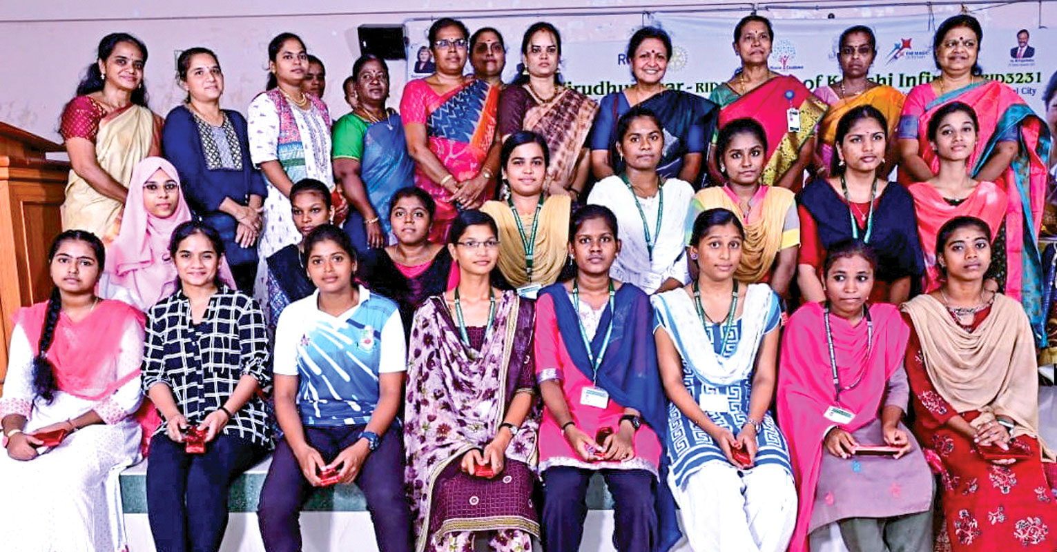 Under the leadership of District 3231 Governor M Rajan Babu, this programme was held in five colleges and caught the interest and ­imagination of around 8,500 college girls from private and government colleges in the cities of Vellore, ­Tiruvannamalai, ­Tirupattur, ­Kancheepuram and ­Tiruvallur, in Tamil Nadu, with the sessions being sponsored by PDG Muthu’s Idhayam group.