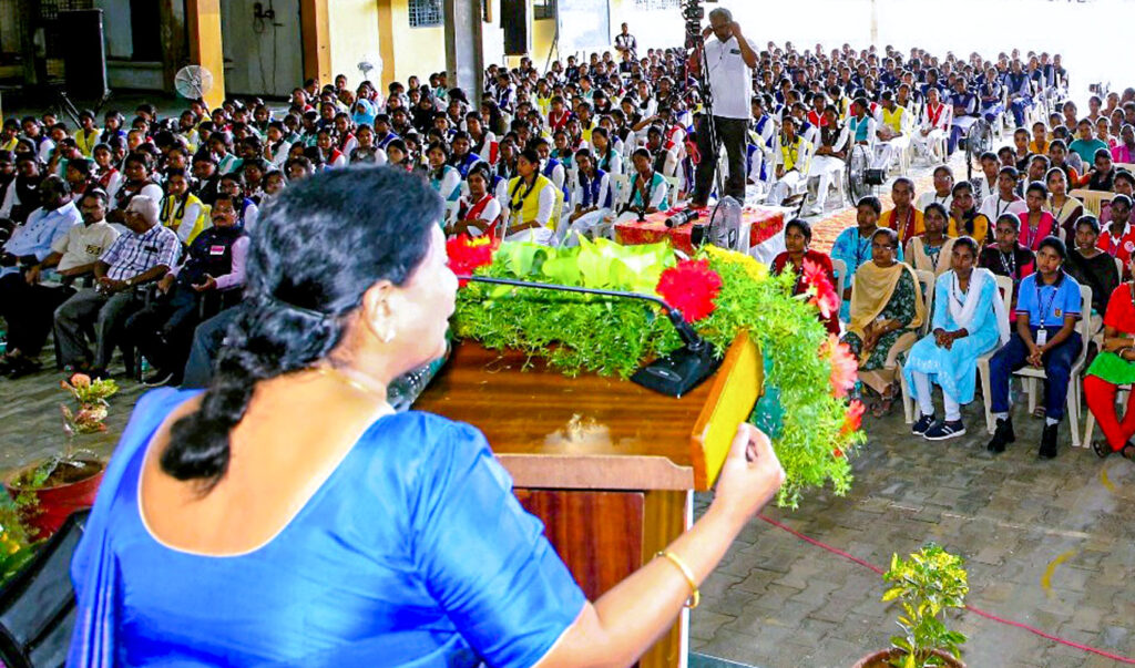 Saritha Muralikrishnan, the district chair for women’s empowerment, who was in charge of this project is wonderstruck when she describes to Rotary News the mindblowing interest that the girls, “most of whom are from rural backgrounds, showed in this project. In DG Babu’s hometown of Tiruvannamalai, the session was attended by nearly 3,000 girls, and as the rooftop auditorium had open sides, the girls were literally overflowing in the verandas, trying to get a glimpse and hear what was being said.