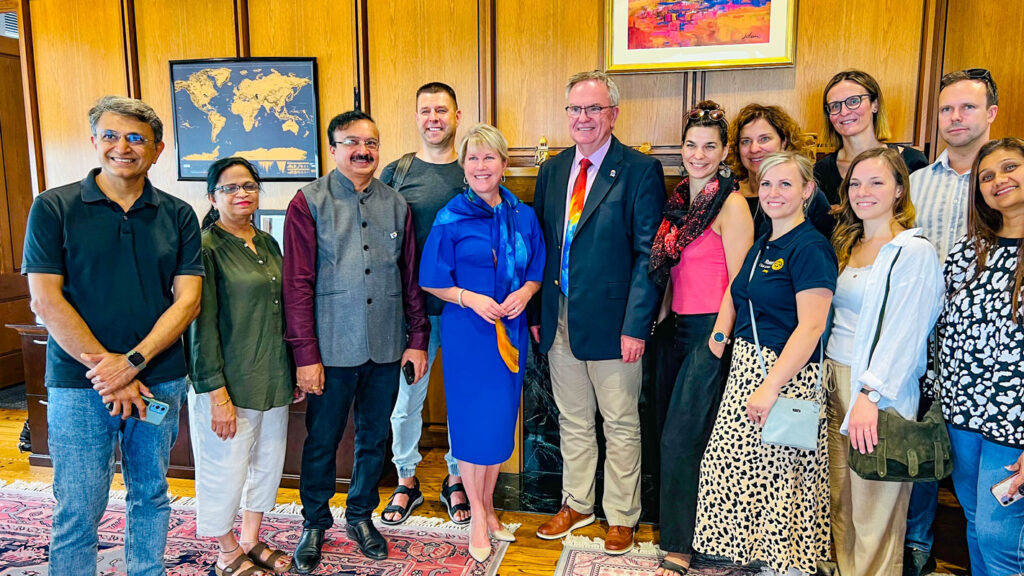 One of the highlights of our visit was experiencing the changing over ceremony between the then president Jennifer Jones and the incoming president Gordon McInally. The ceremony comprised Jones walking alongside McInally from his office to the President’s office, after reaching which he shared his theme for 2023–2024: Create Hope in the World. After the photo frame of his theme had been put in place, a toast of champagne was raised to the completion of a successful term by Jones.