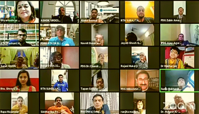 PDGs Shyamashree Sen (3291), Chandrashekhar Kolvekar (3142) and Sunil Zacharia (3201) addressed around 100 viewers. PDG (3291) Debasish Mitra, the chief guest, urged the audience to introduce more women members. The most challenging tasks for Rotary clubs at this juncture are membership retention and inducting new members on a virtual platform without meeting them physically, he said.