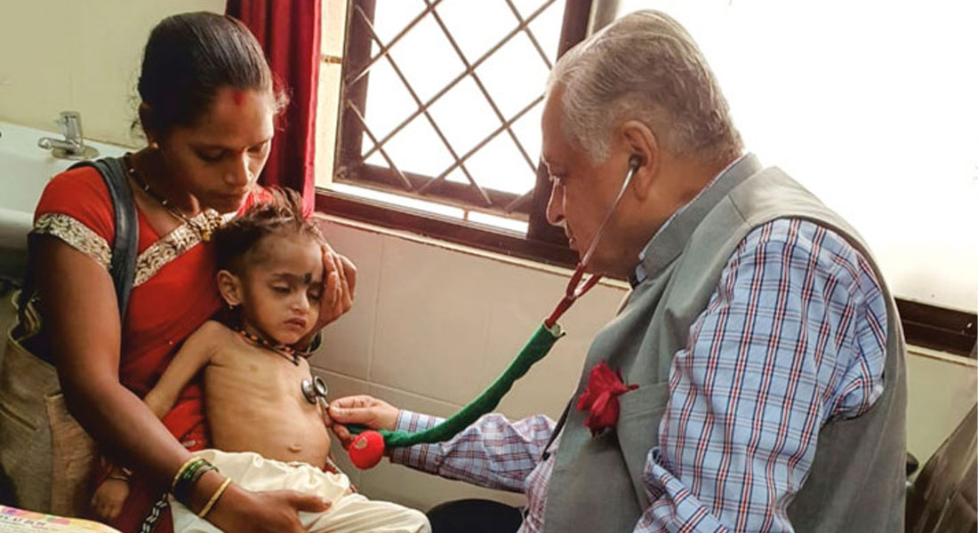 Dr Ranjan Deshpande examining a child in his clinic.