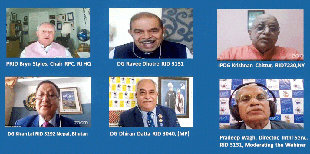 Dr Pradeep Wagh, Director-International Service, RID 3131, moderated the webinar. The programme was live streamed through the Facebook page of RC Pune Shivajinagar reaching out to over 850 Rotarians from around the world.