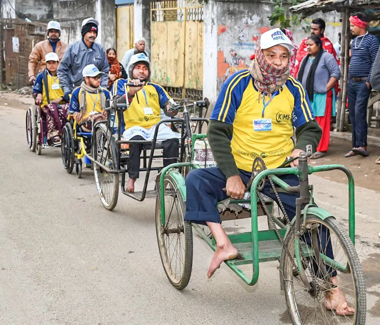 Disabled people from outside Burdwan also participated in the Parathon, and we arranged overnight accommodation for them. Nutritious food was provided to everyone and they were allowed to participate after a medical checkup and verifying the fitness of their supporting equipment. Every participant was given a uniform and a cap for easy identification. The entire route was under the strict supervision of the police and Rotarian volunteers. An ambulance and a medical team were ready to handle emergencies. The participants were recognised with certificates and medals.