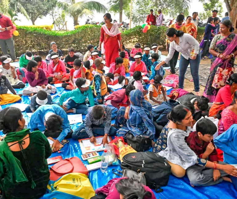So we continued the programme year after year. The number of participants increased with each passing year. We managed to arrange some grant from the Sarva Siksha Mission of the West Bengal government. After 2004 we had to look for an alternate place to accommodate the growing number of children and we identified the Krishna Sayar Eco Park which was located in the University of Burdwan campus. The park surrounds a huge lake and is lush green. We got permission from the university authorities to use the park for our festivities.