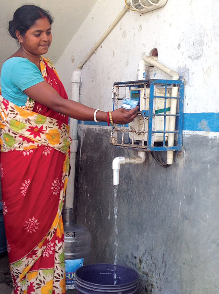 What more could one ask for? We have a reliable source of drinking water, which is clean, safe and, most important, adequate, remarks Rinki Shaw of Kallikapur slum, located on the Eastern Metropolitan Bypass in Kolkata. She is among the many women in the area who have been using a smart card for around two years now to collect 10 litres of potable water every morning for the entire family from an automatic water dispensing machine.