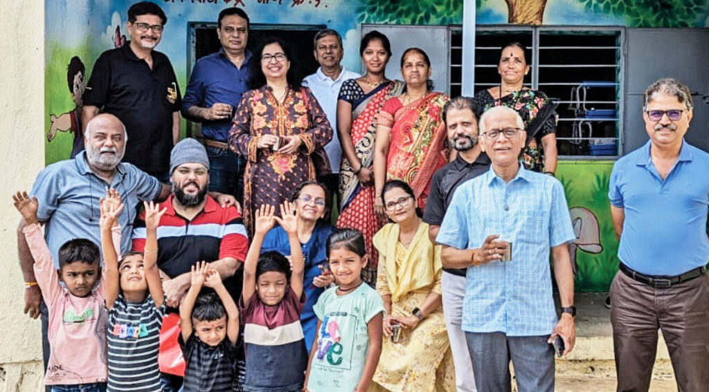 RC Poona West president Santosh Chiplunkar (third from R) and club members with children at one of the anganwadis renovated under Project Ujjawal Anganwadis.