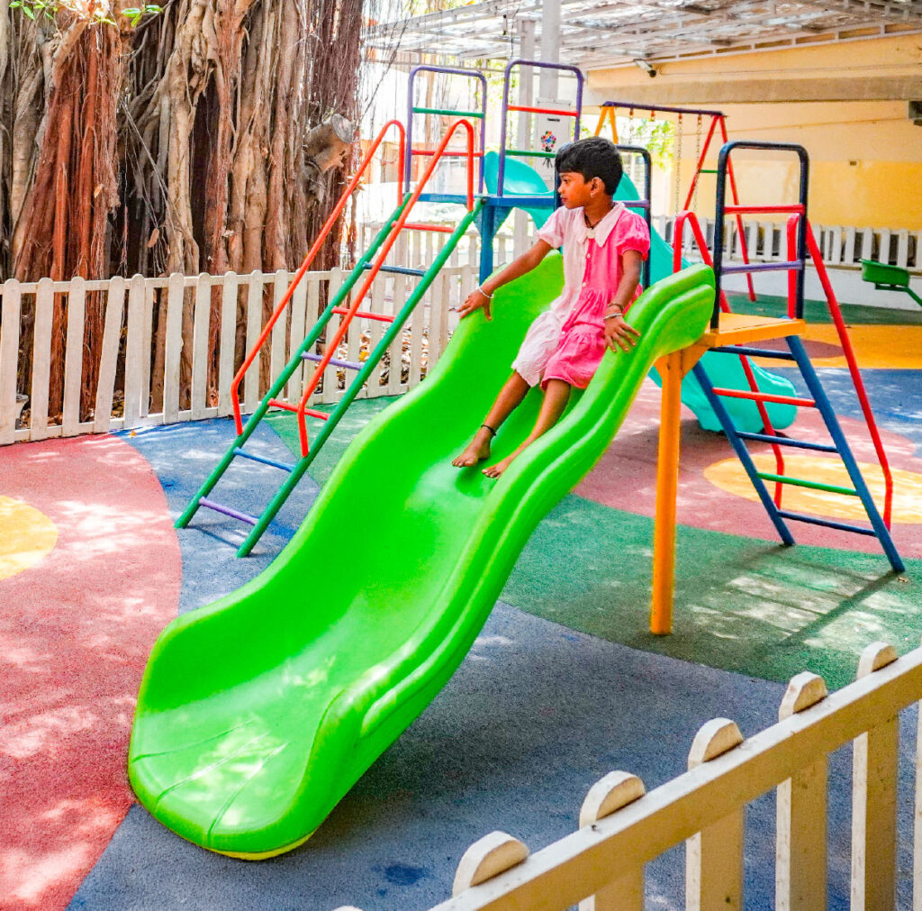 Seated beneath a shed where the trunk of a sprawling banyan tree rises through the roof, a pregnant woman waits quietly at the Rotary Central TTK VHS (Voluntary Health Services) Blood Bank in Chennai. Every now and then, she calls out to her five-year-old daughter, who is absorbed in the delight of climbing up and sliding down a slide in the play area near the waiting area.