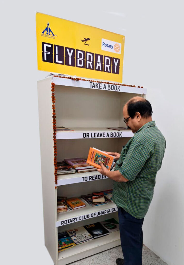 At most airports, waiting for a flight means endless scrolling on your phone, a quick coffee, or simply staring at the departure screens. But at the Veer Surendra Sai Airport in Jharsuguda, Odisha, passengers now have a far better option: they can pick up a book. A cosy corner of the departure lounge has been transformed into a ‘Flybrary,’ a free-for-all reading nook, thanks to the Rotary Club of Jharsuguda Green, RID 3261. A neat shelf at the departure lounge has been stocked with children’s books, novels, self-help titles, and magazines such as Reader’s Digest, along with publications on art, travel and culture.