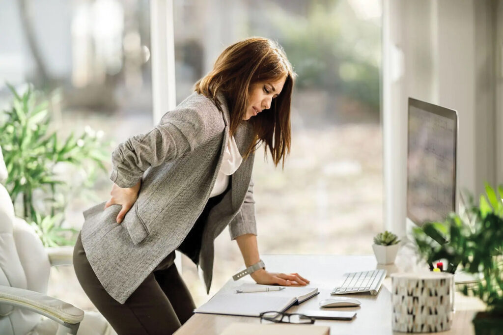 • Prolonged sitting weakens the paraspinal muscles. Get up every hour and stretch or walk a few steps.