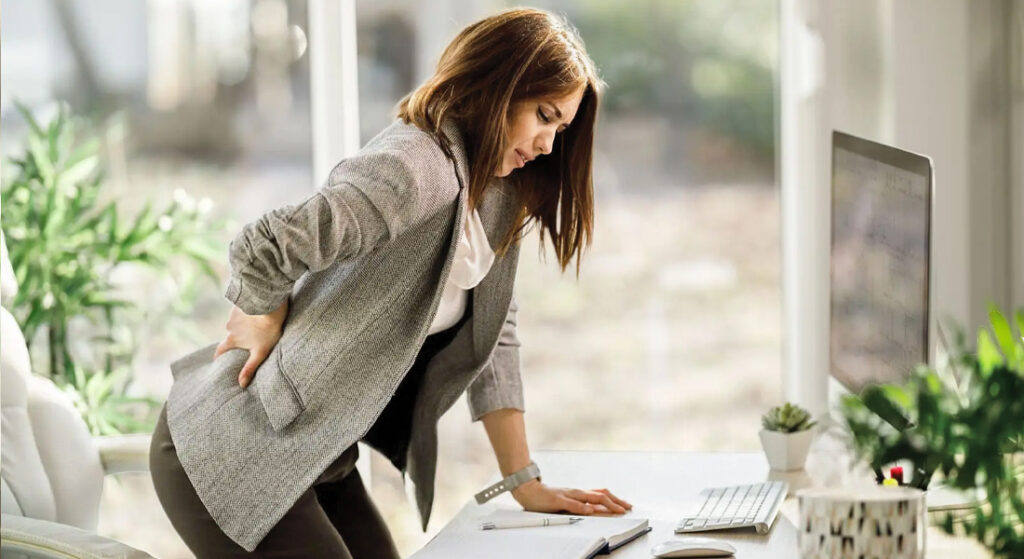• Prolonged sitting weakens the paraspinal muscles. Get up every hour and stretch or walk a few steps.