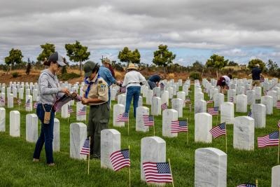 United States Inspired by the American flags placed beside headstones at military cemeteries, Rick Clark asked officials at Miramar National Cemetery in San Diego if Rotary clubs could similarly pay tribute to service members interred there. Clark, a past president of the Rotary Club of La Jolla Golden Triangle, is