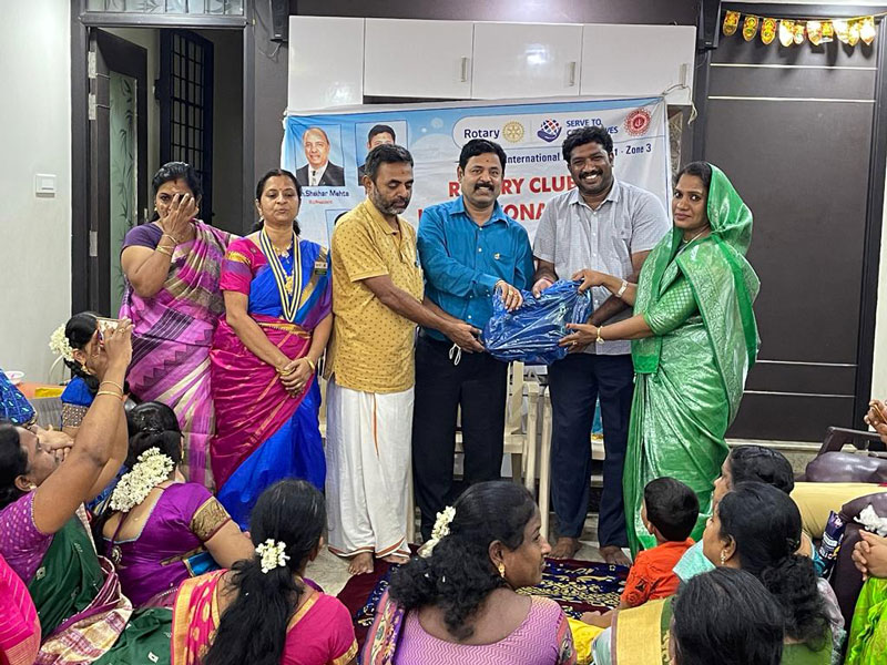 Sarees were distributed to flood-hit families at four different colonies at Indukurupeta Mandal in Nellore district. The beneficiaries thanked Rotarians for the timely gesture.