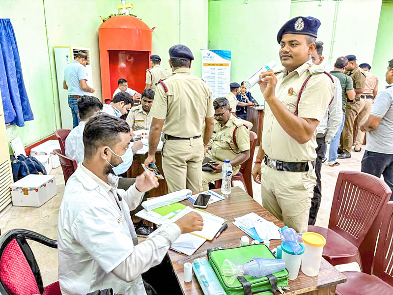 A kidney health-cum-wellness camp was held in partnership with Vivacity Hospital for frontline workers. BP, blood sugar, BMI, ear check, breathing test, and kidney function tests were done. Health cards with test results were given.