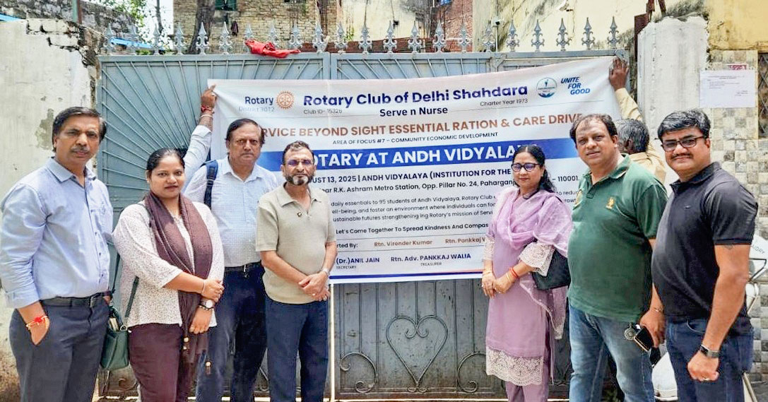 Groceries were donated to the Andh Mahavidhyalaya Blind School, Panchkuian. The club will be providing uniforms to 25 students and 80 bedsheets for the visually-impaired children at this boarding school.