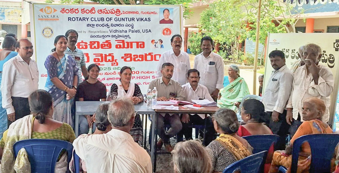 Over 200 persons were screened at an eye check-up camp at Ananthavarappadu village with the support of Sankara Eye Hospital, Peda Kakani, and Vidhisha Paleti from RecycleSpecs, Texas, US. Among them, 105 were selected for cataract surgery.