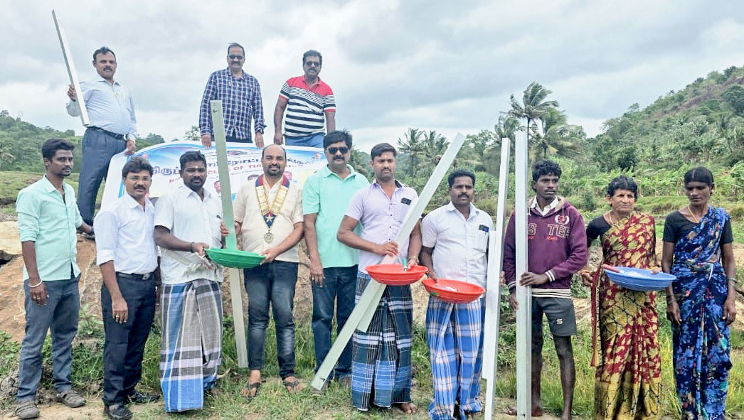 The club presented equipment to 100 construction workers in Keezhanoor village near Pudurnadu Hills in Tirupattur district of Tamil Nadu. Fertilisers were distributed to 30 farmers at this village.