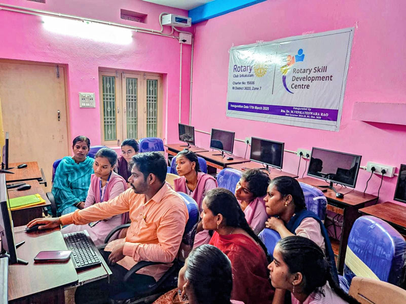 Two batches of students have completed a two-month computer training being given in partnership with the Sri Sathya Mandiram. They get hands-on coaching in computer programmes and receive career guidance from Pasagada Suryanarayana, a Rotarian.