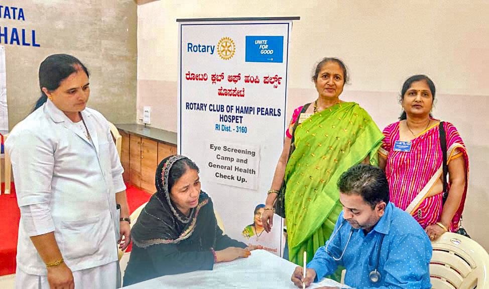 An eye and health check-up camp was held jointly with the Rotary Eye Hospital, Hospet, and the local health department. Around 25 individuals were identified for cataract surgery.