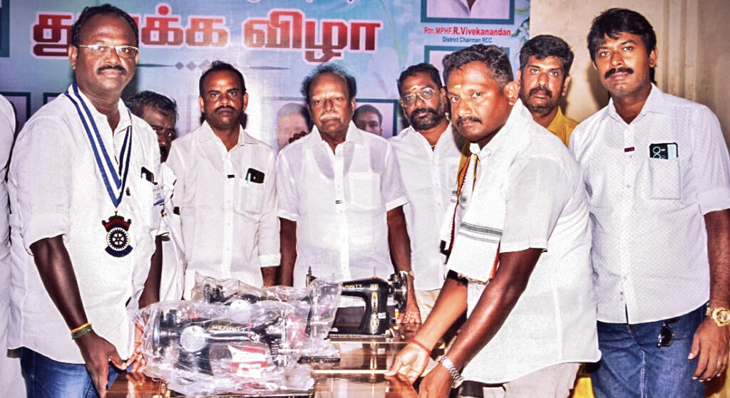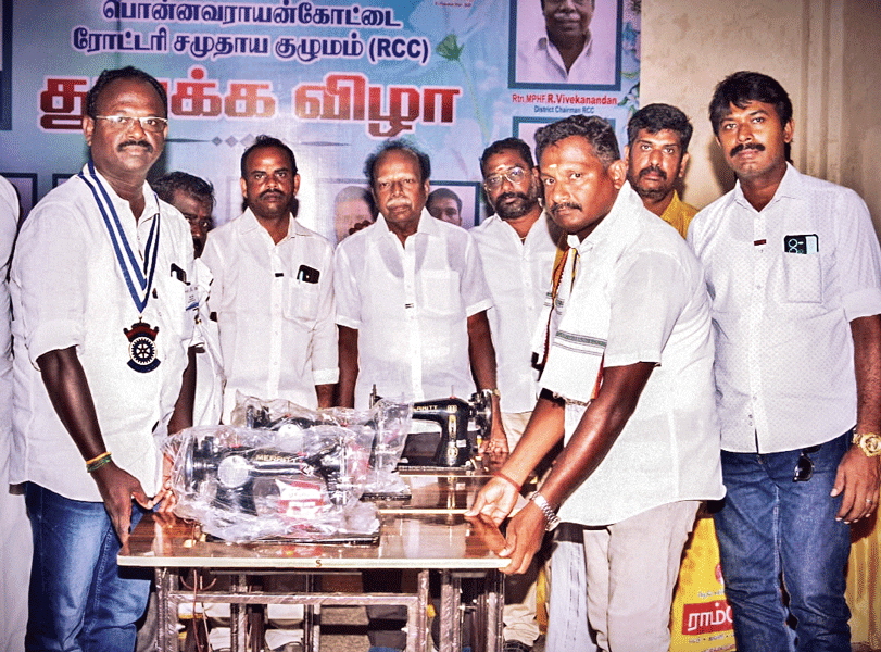 Sewing machines and farm equipment were donated to the newly started Ponnavarayankottai RCC for the benefit of its members. The project lifted the public image of the club in the vicinity.
