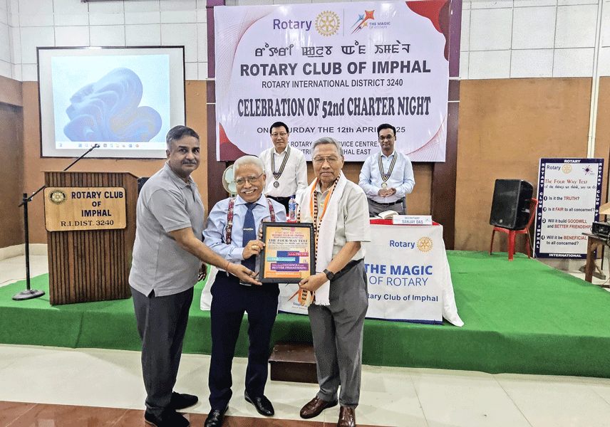 Club member Tomcha Singh spoke on Rotary at the 52nd charter night of the club. He gave PHF pins to M Veto and Ksh Chingthang, both doctors; while senior member, Akham Nilamani was honoured.
