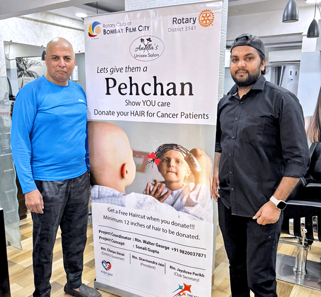 Under Project Pehchan, the club collects hair from donors which are then made into wigs for cancer patients. This year, they had eight donations till now and Anella Salon, Andheri, is providing free services. Sonali Gupta initiated the project being led by club member Walter.