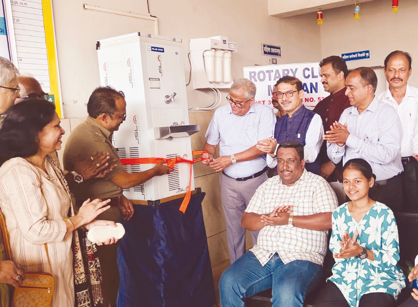 A water purifier, along with a cooler, was installed at the Malvan main bus stand. PDG Sangram Patil, AG Prashant Kolte, club president Pankaj Pednekar and event chair Mahadev Patkar were present. The water kiosk will benefit over 250 commuters a day.