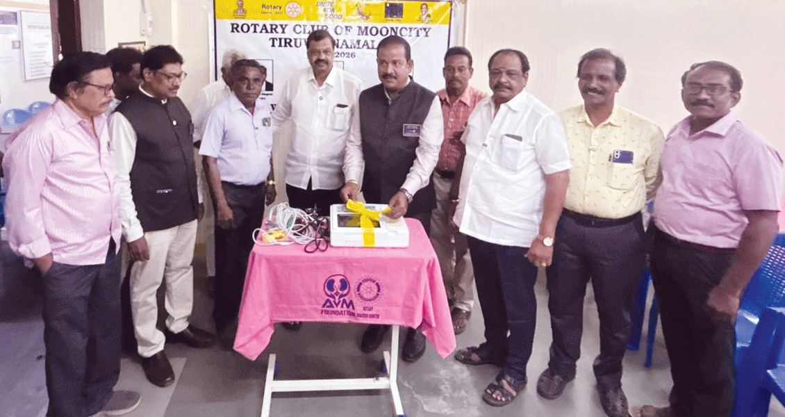 DG V Suresh donated 12 portable ECG machines (₹63,000) to the Rotary Dialysis Centre. The machines will enhance the diagnostic capabilities of the centre, benefitting the patients.