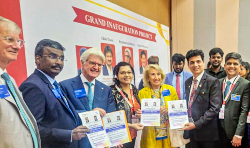 Rotary’s Four-Way Test posters were shared with RI President Franceso Arezzo, RI directors M Muruganandam and K P Nagesh at the Lead25 Conclave in Chennai. PP Sreya Mukherjee distributed small cards of the same to delegates.