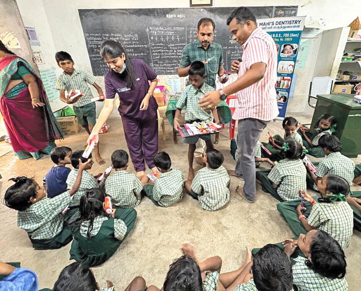 Around 50 children were screened at a dental check-up and awareness camp held at the Vasavi Aided Primary School, Karur, in tie-up with the Rotaractors. Dr P Mahesvari examined the students who were each given a toothbrush and toothpaste.