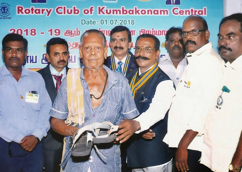 Specially designed footwear worth ₹50,000 were given to leprosy patients at the Sacred Heart Hospital. Lunch was provided for 200 patients at the hospital.