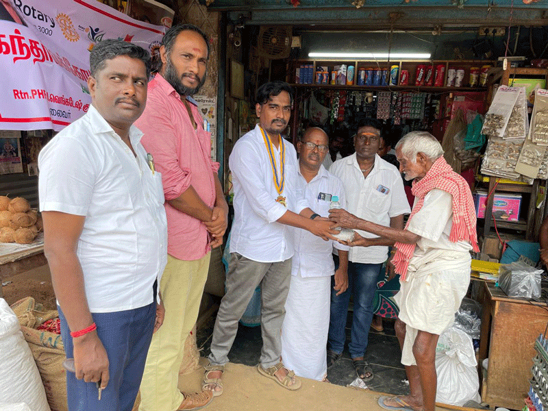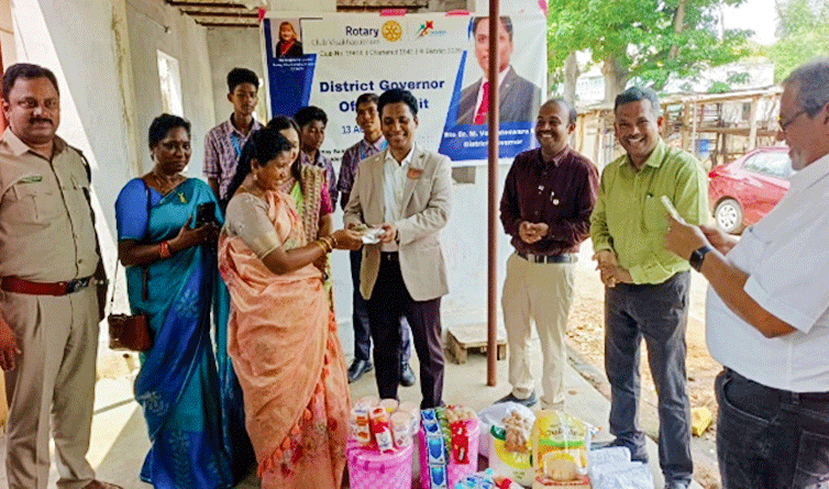 Food packets were distributed to physically-challenged as the first project for the new Rotary year.