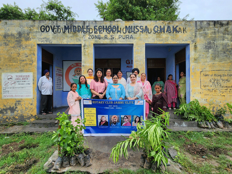 Around 50 saplings were planted at the Government Middle School, Mussa Chak, in R S Pura taluk, Jammu, followed by an environment session.