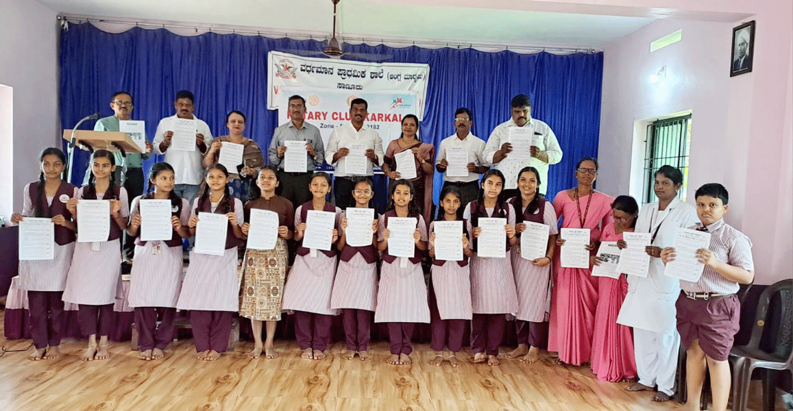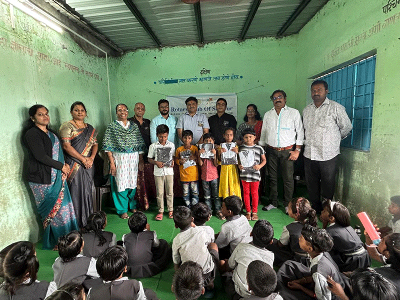 School uniforms were distributed to children at a government school with project chairperson Shalini Singhal coordinating the event.