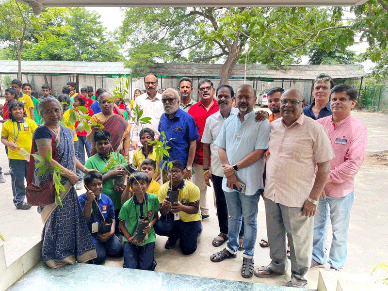 Around 100 saplings with tree guards were planted at Kendriya Vidyalaya, Meenambakkam, and the Army DGQA, Nanganallur; 100 palm seeds and 2,000 seed balls were distributed.