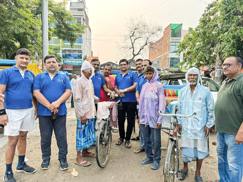 The club gave raincoats to 50 rickshaw pullers near bus stops and at the railway station.