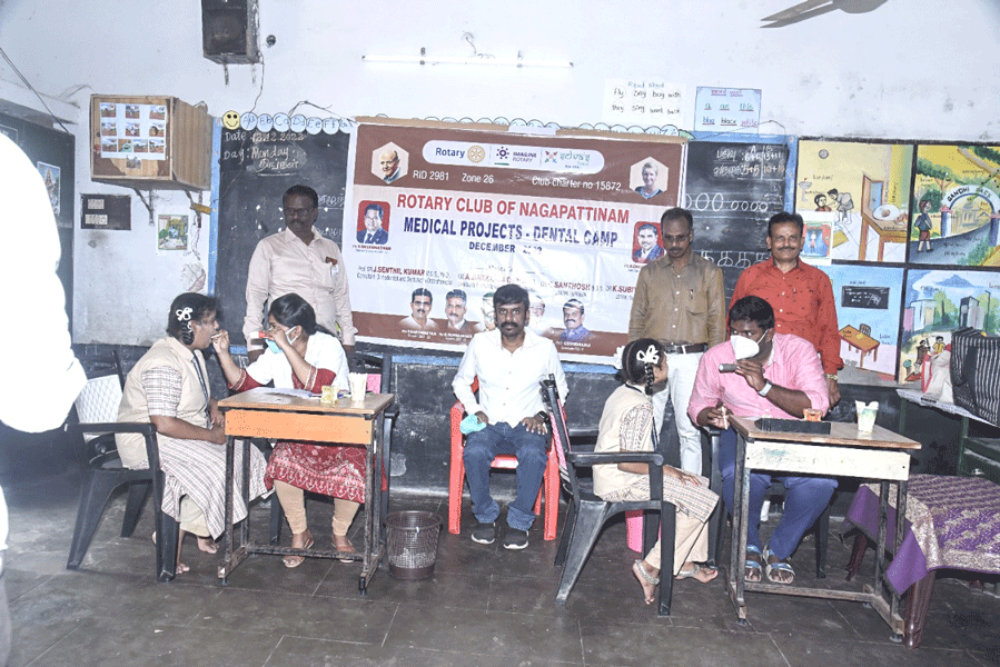 230 students and teachers at the Municipal Middle School were examined at a dental camp. Club president P Karthikeyan and event coordinator Dr V Govindarajulu were present.