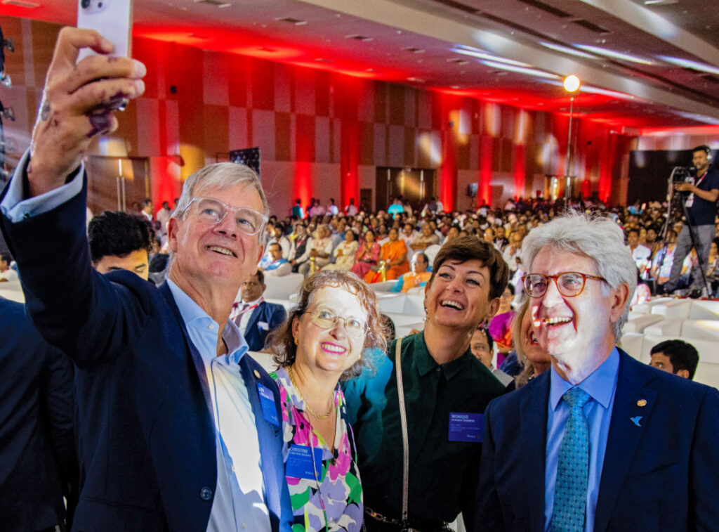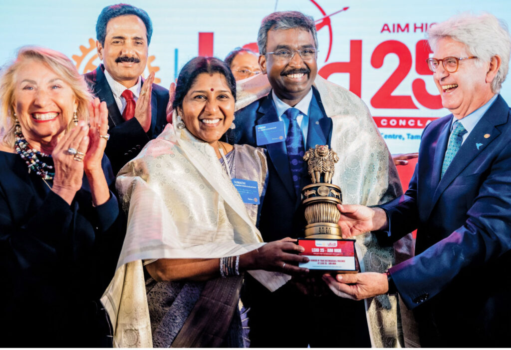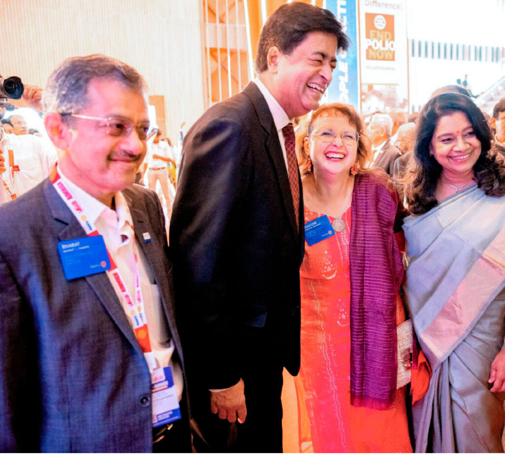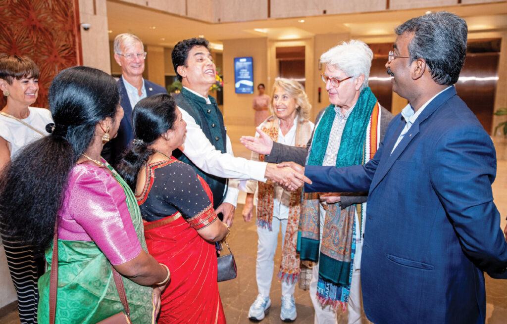 RI President Francesco Arezzo and his wife Anna Maria display a copy of Rotary News to the Editor. President Arezzo’s aide John de Giorgio takes a selfie with RI Director Christine Buering, his wife Monique Chambers and President Arezzo. (From L) TRF Trustee Bharat Pandya, PRID A S Venkatesh, RID Christine and Vinita Venkatesh.TN Deputy CM Udhayanidhi Stalin lights a lamp as (from R) School Education Minister Anbil Mahesh Poyyamozhi, Lead25 co-convener RID K P Nagesh and event chairman PDG John Daniel look on. President Arezzo steps out of an autorickshaw at the inaugural of the Pink Auto project of RID 3234.President Arezzo and Anna share a lighter moment with Lead25 convener RI Director M Muruganandam and Sumathi. PDG Daniel is seen behind.PRID C Basker and his wife Mala.RIDs Muruganandam and Nagesh with Lead Committee members.President Arezzo plays cricket at the House of Friendship.Trustee Pandya greets President Arezzo and Anna.Camaraderie: RID Muruganandam, President Arezzo, Anna, RID Nagesh, his wife Uma, and Sumathi, engage in banter as de Giorgio and Monique look on.