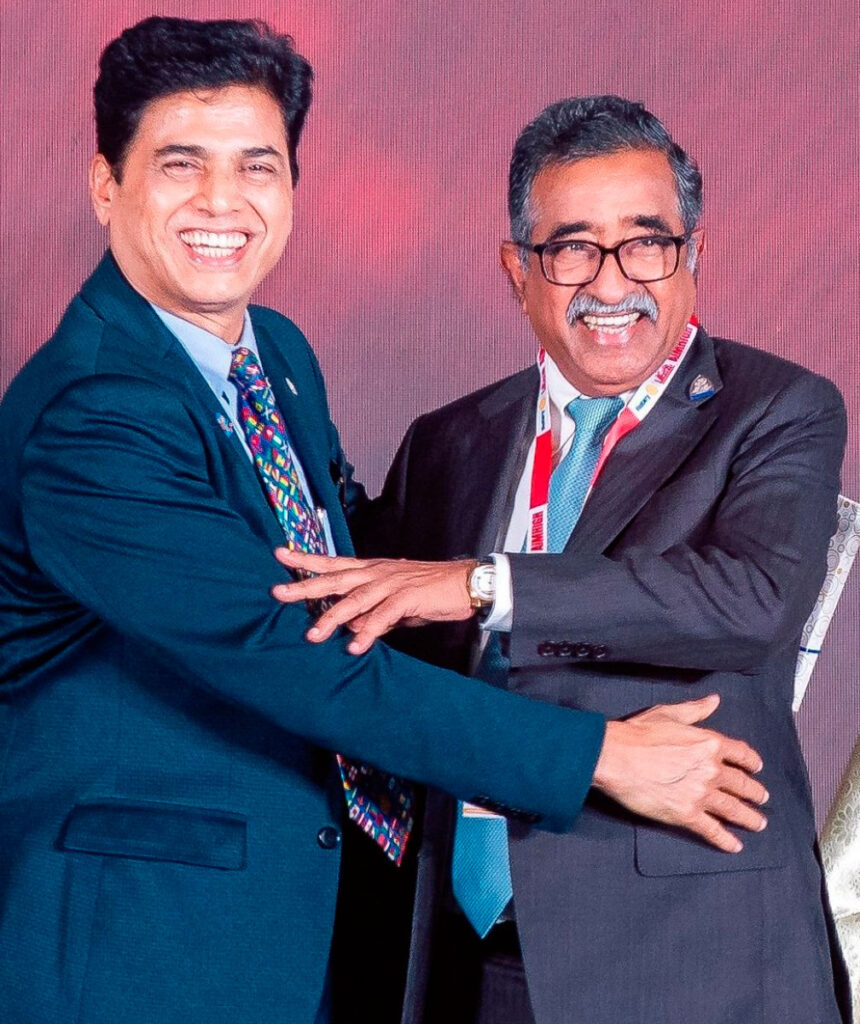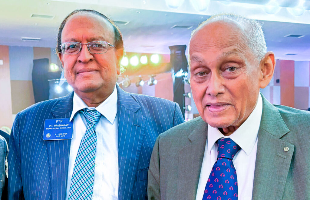 PRIP Kalyan Banerjee (R) and PRID P T Prabhakar.RI Director K P Nagesh and PRID Anirudha Roychowdhury.From L: RI Director Nagesh, PRIP K R Ravindran and RI Director Muruganandam.PRID Ashok Mahajan and RI Director M Muruganandam.RI Director Nagesh and PRID Raju Subramanian.