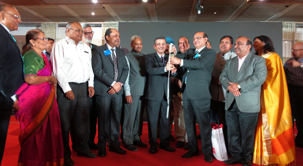 From L: RID C Basker, RIDN Bharat Pandya and PRID P T Prabhakar with D 3040’s PDG Ashok Tanted, DGND Gajendra Narang, DGE Gustad Anklesaria, PDG Nitin Dafria and DGN Dhiran Datta.