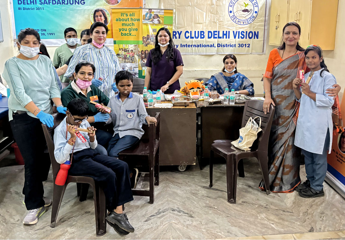 RC Delhi Safdarjung, RID 3011, along with the NGO Smile India, organised a dental check-up programme for 100 children with special needs at the Vision Special School in the city. Besides complete dental examination by professionals, and lessons in oral hygiene, the camp also included application of fluoride to the children’s teeth to reduce the risk of developing caries. Fluoride helps strengthen tooth enamel, making it more resistant to acid attacks from plaque bacteria and sugars in the mouth, explains club president and dentist Priya Oberoi.