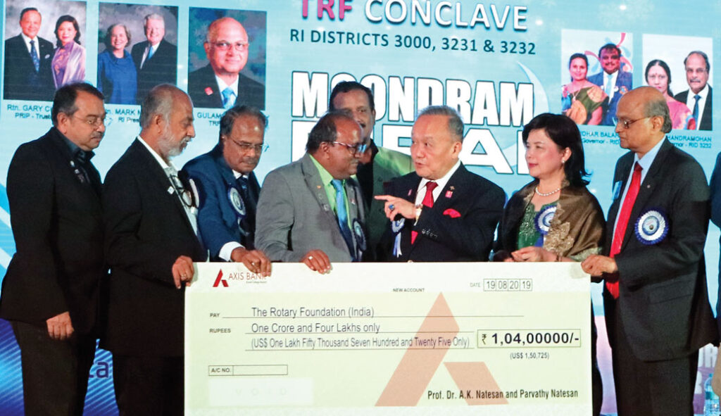 Presenting a cheque for ₹1.04 crore to TRF, DG Dr A K Natesan, RID 2982, who is becoming an AKS member, said most of his clubs were in the rural belt spread across six revenue districts. “Our applications for 3–4 global grant projects were rejected following the adoption of a new community assessment which does not take into account the geographical disparities we are burdened with,” he said. They have set a target of $5 lakh in TRF giving this year.