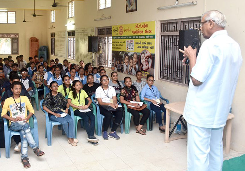 Rotary Club of Mandvi, RI District 3054, organised an educational workshop for students of Classes 10 and 12. Close to 120 students attended this workshop to promote a healthy attitude towards learning and education. Educationist Giju Bharad, who has more than 40 years of experience in training students preparing for their board exams, addressed the gathering on various topics.