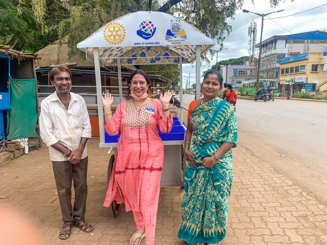 Rotary Club of Hubli Vidyanagar, RID 3170, donated handcarts with storage boxes to underprivileged women. They can use these mobile carts to sell vegetables, fruits, wares or food items and earn a living, said club president Dr Mahima Dand.