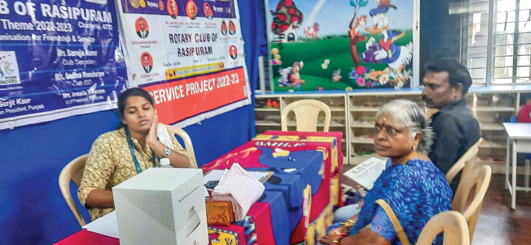 With anxiety and fear writ large on her face, 60-year-old Gnanambal travelled 30km to a breast cancer screening camp hosted jointly by RC Rasipuram, RID 2982, and the local Inner Wheel club. She wanted to know the status of a small, but perceivable lesion on her breast and on examination with the help of diagnostic equipment, it was found to be malignant.