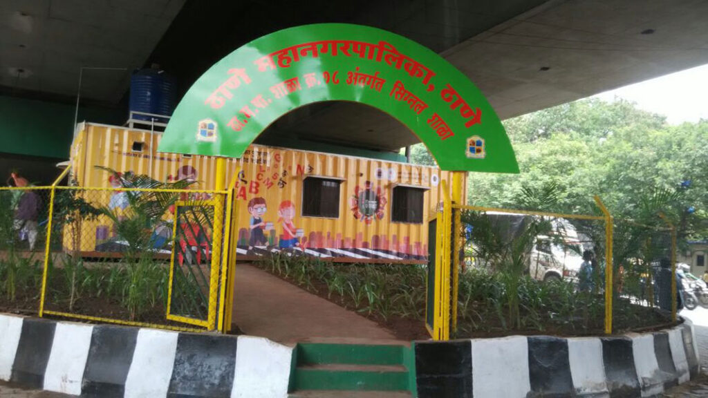 Under a flyover opposite the signal at Thane is a 40 ft container painted in bright yellow, with a board on it that reads ‘Signal School’ and this is where Bhuhan is learning “ABC…123. I also know the names of vegetables in English and my mother is happy, that I get good food to eat here,” says the delighted boy. Munni, another student who was born under the same bridge where the school is located today, says, “I want to be a teacher, when