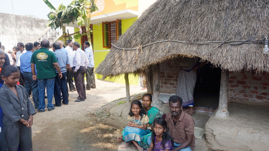 The pride of the pack was a glistening BMW transporting PRIP Kalyan Banerjee, who had flown down from Mumbai to inaugurate some low cost shelters built by the Rotary Clubs of Chennai Galaxy, Mamandur and Chennai Thiruvanmiyur, with help from TRF Matching Grants and Districts 3680 (South Korea), 1880 (Germany) and 3590 (Korea) respectively.