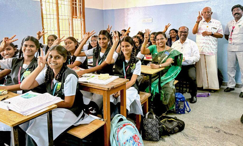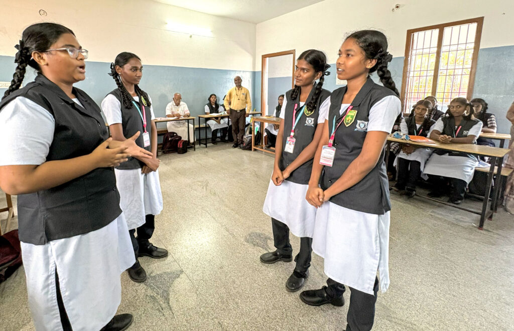 It is with a lot of confidence that Koshika Mariappan, a Class 11 student of S Shunmugasundara Nadar Matriculation Higher Secondary School, Authoor, near Thoothukudi (Tuticorin) in Tamil Nadu, holds a conversation with me in simple English. One would expect her to have basic skills in spoken English, considering she is studying in English medium. But the problem, points out PDG V R Muthu, RI District 3212, is that “while students, even in the smaller towns of Tamil Nadu know and understand English, they cannot speak in English, because they always communicate in Tamil with friends and family. All of them can write beautifully in English, but their skills in spoken English are either poor or non-existent.”
