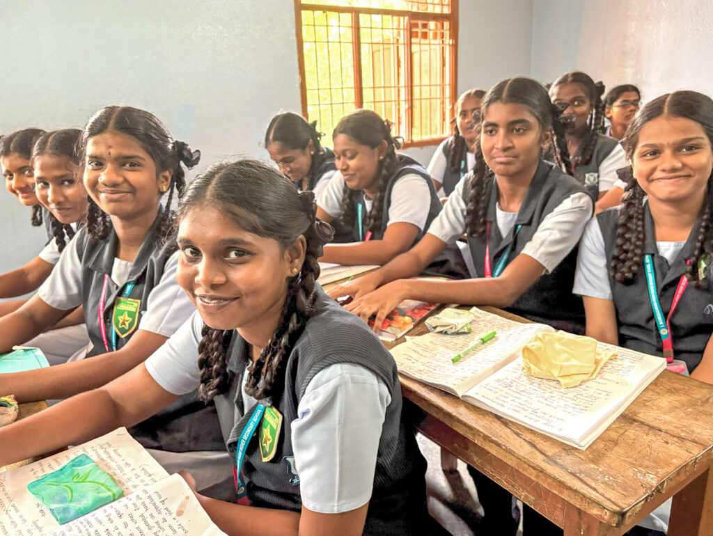 Her classmate Muthu Abhinaya has only one sentence to offer when asked why she wants to learn English. “Because I want to speak in English.” Sangeetha Udayakumar, whose father works as a hotel manager in Abu Dhabi, next steps up to say confidently, “I have learnt how to speak to people without any fear. And how to keep eye contact with everyone and stand in the right position while speaking to people.” Her future plans? “I want to become a psychiatrist.”