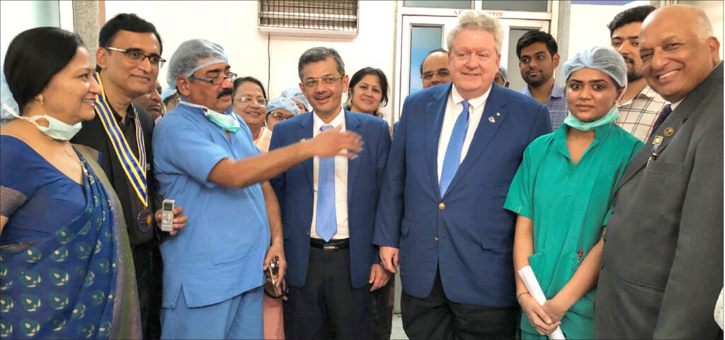 RIPE Mark Maloney with PDG Kishor Kedia and RIDE Bharat Pandya visiting the plastic surgery camp.