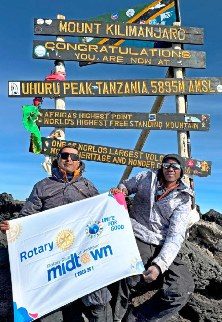Trekking has been a lifelong passion for Rathore, secretary of RC Jodhpur Midtown, RID 3053. But Kilimanjaro was more than another adventure, “it was my boldest challenge yet,” he says. Battling altitude sickness, numbing cold and punishing climbs, he embodied what he calls “the Rotary rhythm — discipline, consistency and the courage to keep moving forward.”